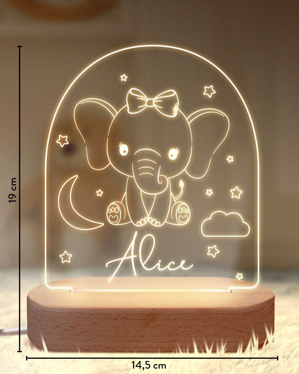 Lampada a LED in Plexiglass con Elefantino e Nome Personalizzata – Una Luce Magica per la Camera della Tua Bambina