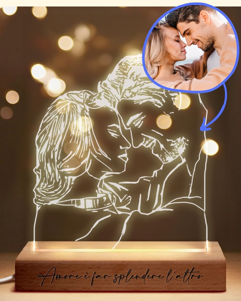 Porta un tocco di magia nella tua vita quotidiana con una lampada personalizzata che illumina i momenti più belli del vostro amore. Ordina ora e crea un ricordo luminoso che durerà per sempre.