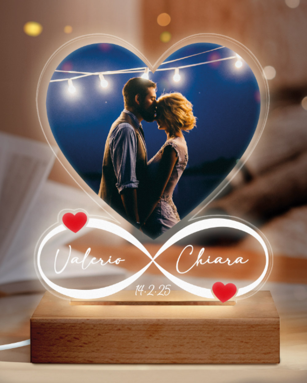 Lampada Personalizzata con Foto, a Forma di Cuore con Simbolo dell’Infinito – L’Idea Regalo Perfetta per San Valentino o Anniversario