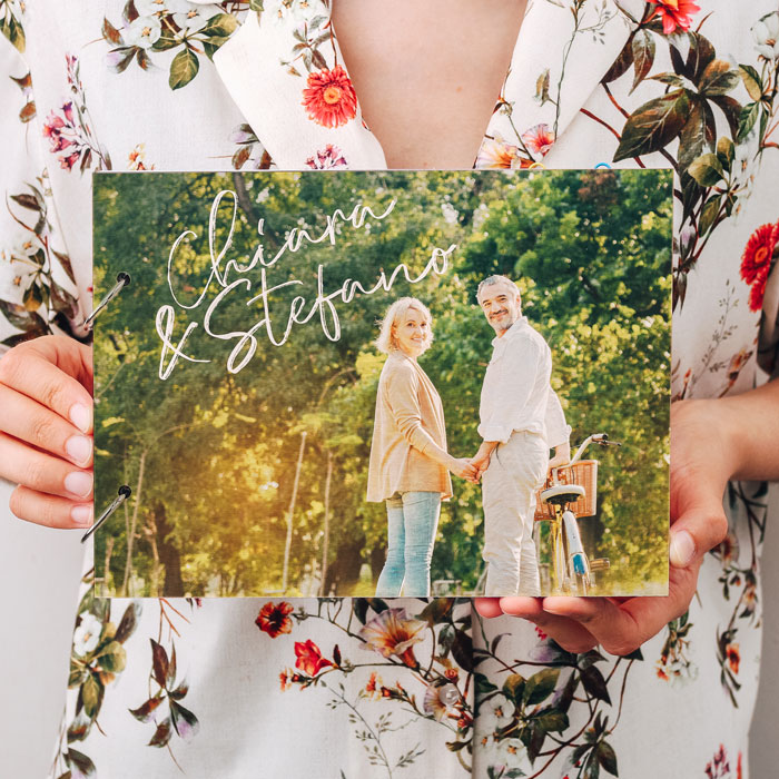 Guestbook in legno di betulla personalizzato con foto e nomi.