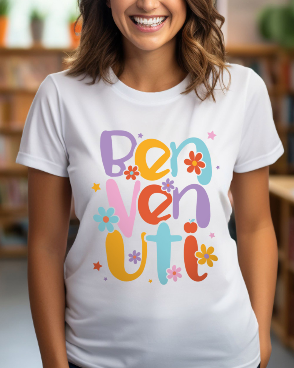 Maglietta t-shirt per maestra “Benvenuti”: preparati a iniziare l’anno scolastico con simpatia!