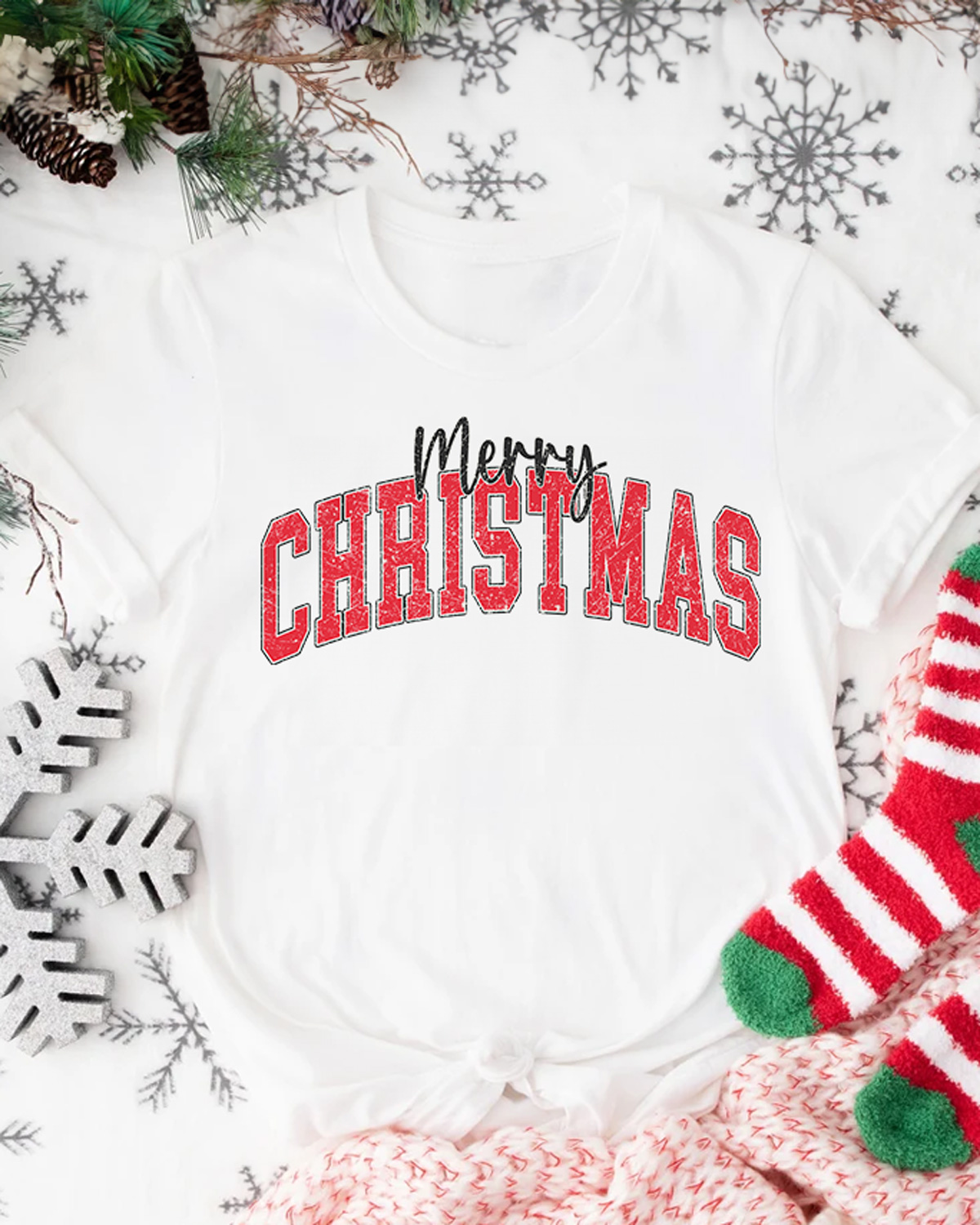 1 recensione per Maglietta T-shirt Natalizia “Merry Christmas” Stile College – Idea Regalo per il Natale, per Lei