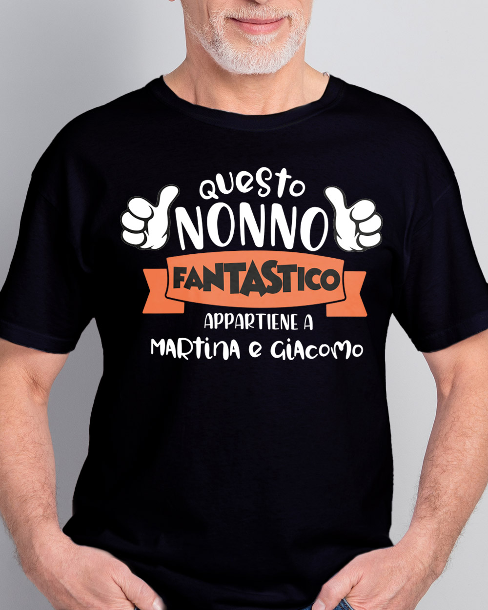 - Personalizzazione: La scritta “questo nonno fantastico appartiene a” rimane standard. La t-shirt è personalizzabile con i nomi dei nipoti.