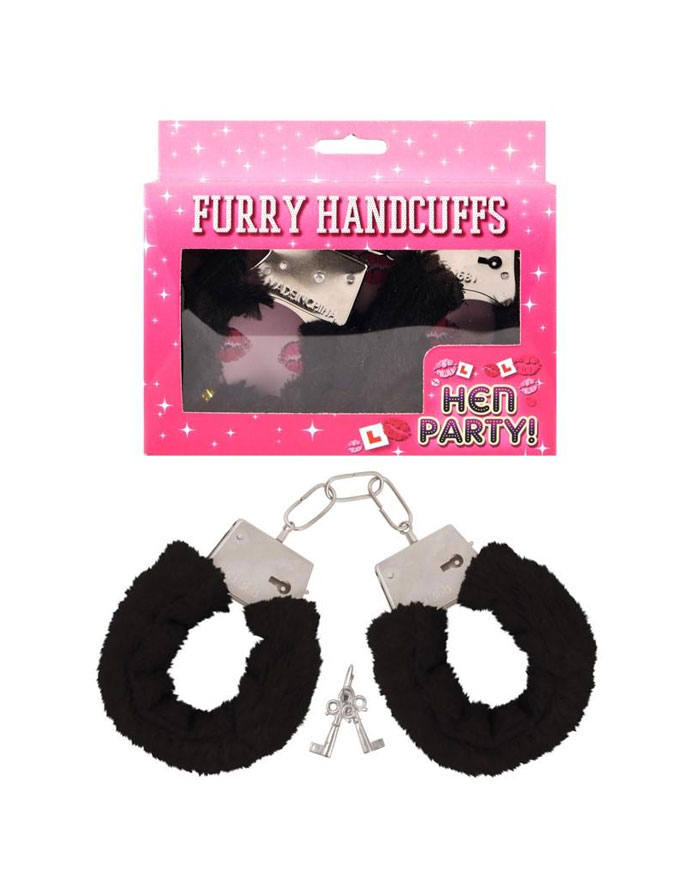 Ogni confezione contiene un paio di manette in pelo nero e due chiavi per aprirle.