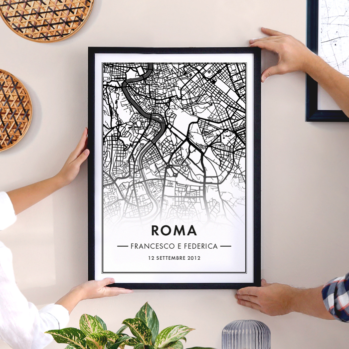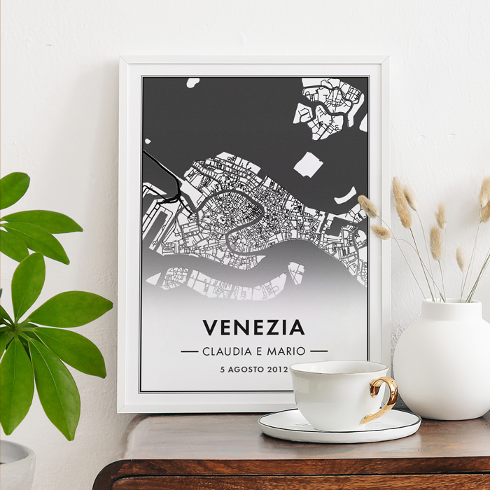 Questa stupenda mappa della città è perfetta per stupire il tuo lui o la tua lei in occasione del vostro anniversario o di San Valentino. Come funziona? Basta indicare la città che desideri e noi inseriremo la mappa corrispondente in questa stampa suggestiva e romantica.