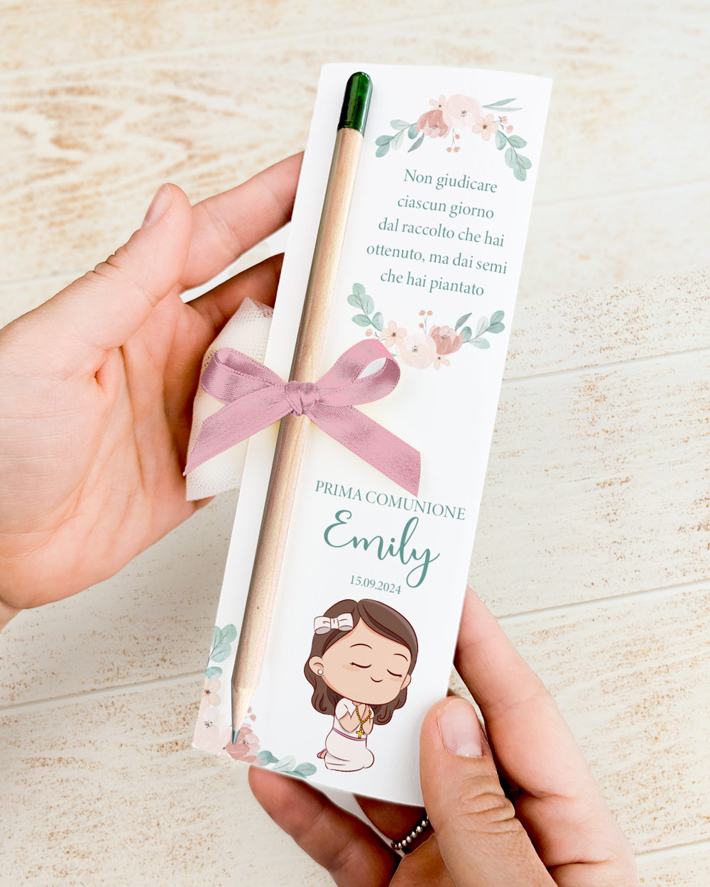 Le Matite Piantabili Personalizzate con Dedica, Nome e Decori Floreali sono un’idea regalo unica e affascinante come bomboniera di Comunione per bambina. Queste matite non si limitano a essere strumenti utili per scrivere o disegnare, ma offrono anche un valore aggiunto ecologico: al loro interno contengono semi che, una volta piantati, si trasformeranno in una bellissima pianta.