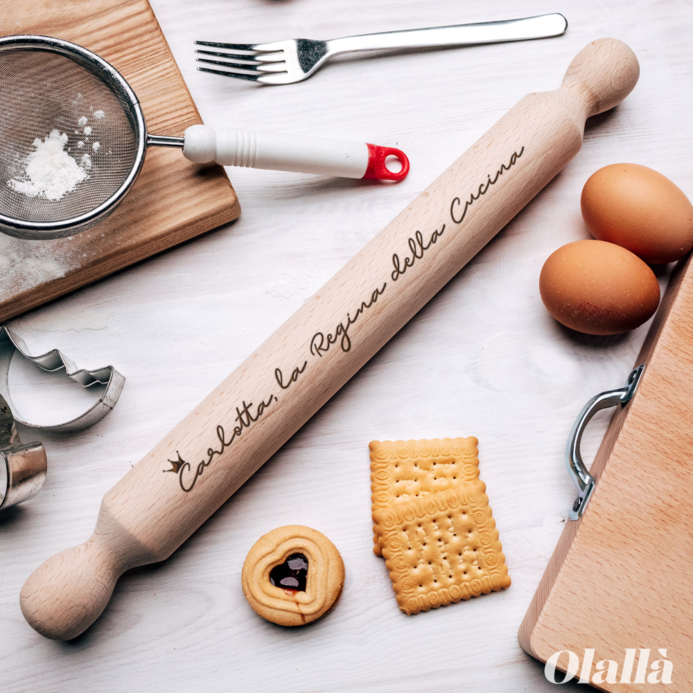 Mattarello in legno di faggio, artigianale Made in Italy personalizzato con incisione a laser.