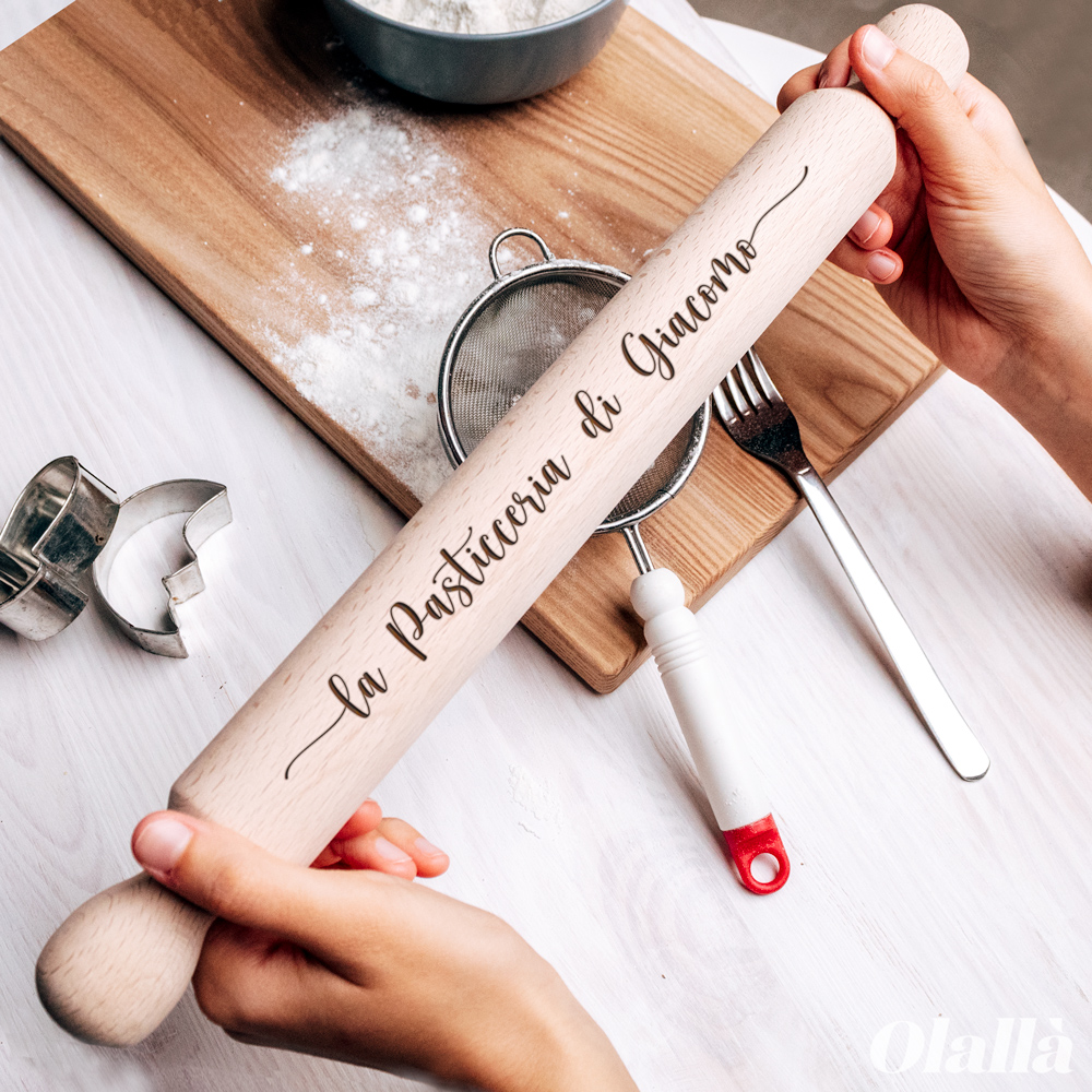 Mattarello in legno di faggio, artigianale Made in Italy personalizzato con incisione a laser.