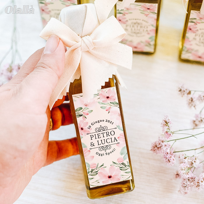 4 recensioni per Mini Bottiglietta di Olio con Etichetta Personalizzata Bianca con Decori Floreali – Idea Bomboniera per Matrimonio