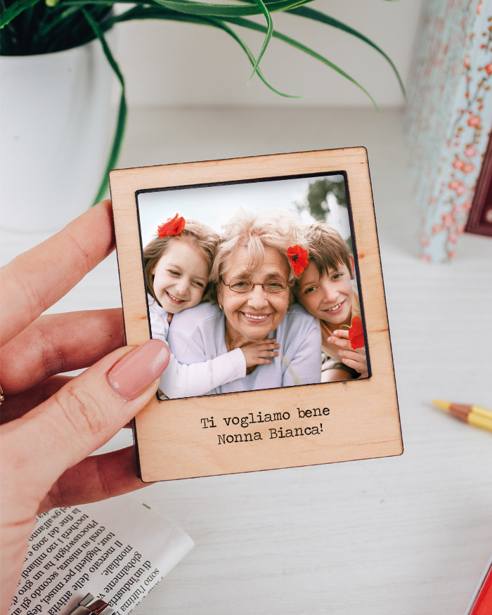 Dolcissima mini cornice da tavolo stile polaroid, personalizzabile con una foto e la dedica che desideri. Un pensierino dolcissimo per ricordare ai tuoi nonni quanto gli vuoi bene!