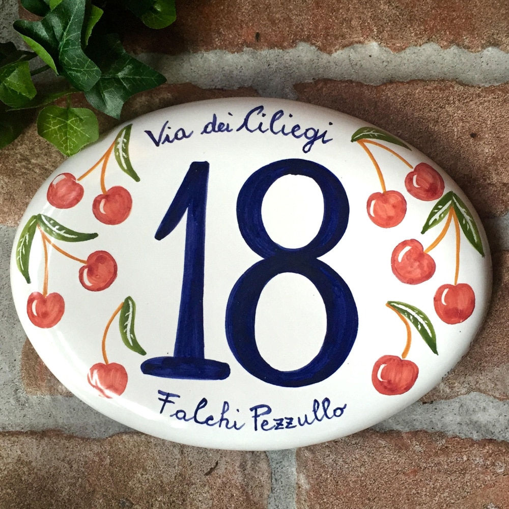 Formella con l’indicazione del vostro numero civico e, se volete, della via, comune o nome di famiglia. E’ un numero civico in ceramica che vi durerà almeno 20 anni: resistenza garantita contro il gelo, sole ed intemperie. I colori potrebbero variare leggermente da quelli presenti in foto, a seconda della luce e del tipo di schermo.