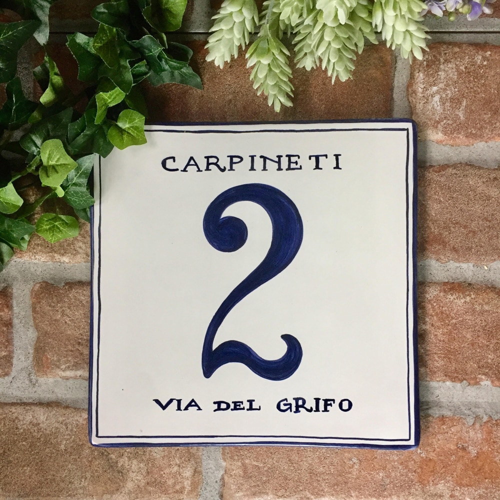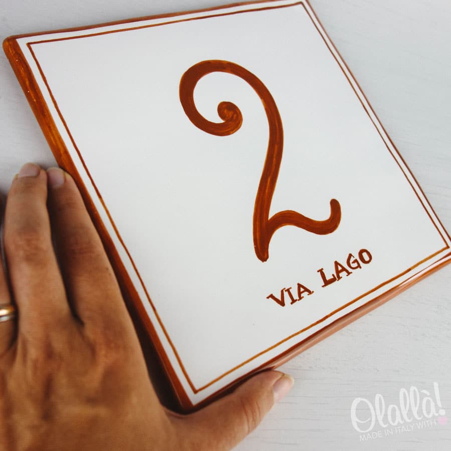 Formella con l’indicazione del vostro numero civico e, se volete, della via, comune o nome di famiglia. E’ un numero civico in ceramica che vi durerà almeno 20 anni: resistenza garantita contro il gelo, sole ed intemperie. I colori potrebbero variare leggermente da quelli presenti in foto, a seconda della luce e del tipo di schermo.