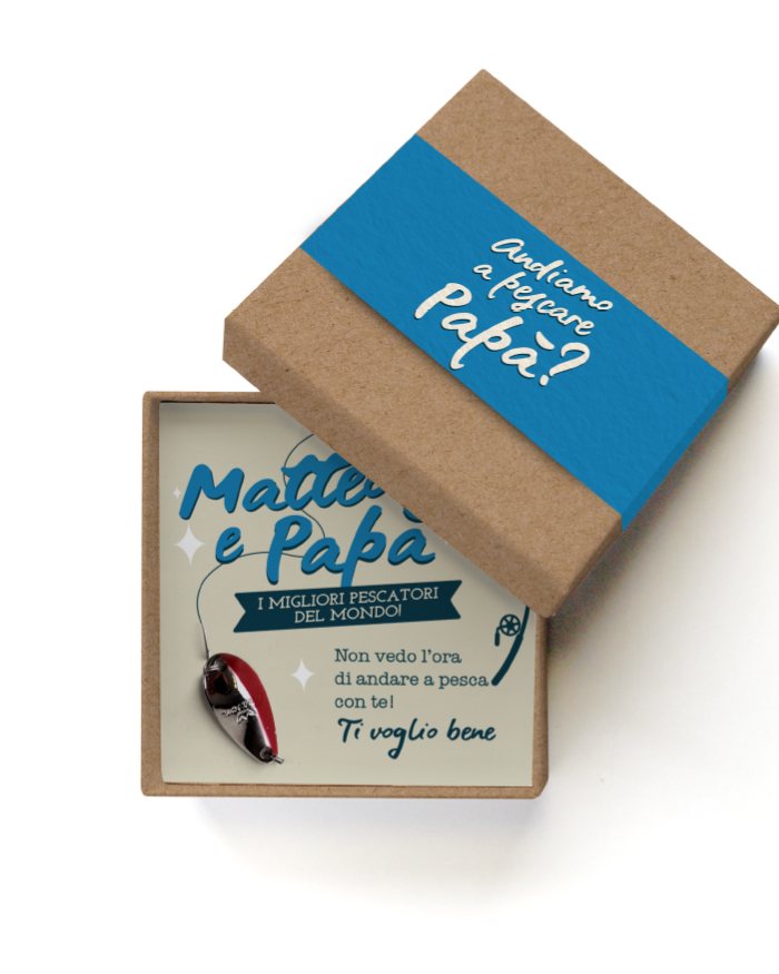 Il regalo pensato per ogni papà appassionato di pesca che sogna di condividere la sua passione con i suoi bambini, per trascorrere il perfetto momento padre e figlio. Regala questa simpatica scatolina con ondulante al tuo papà in occasione della Festa del Papà o del suo compleanno, gli basterà aprirla per commuoversi davanti a questa tanto desiderata richiesta!