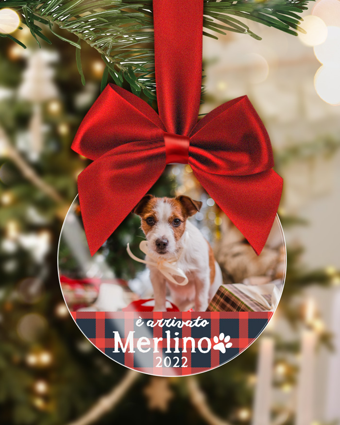 Deliziosa Pallina in Plexiglass personalizzabile con foto ricordo del vostro amico a quattro zampe, zampetta e nome. Un simpatica pallina per ricordare che il Natale va festeggiato anche in compagnia dei nostri fidatissimi animali!