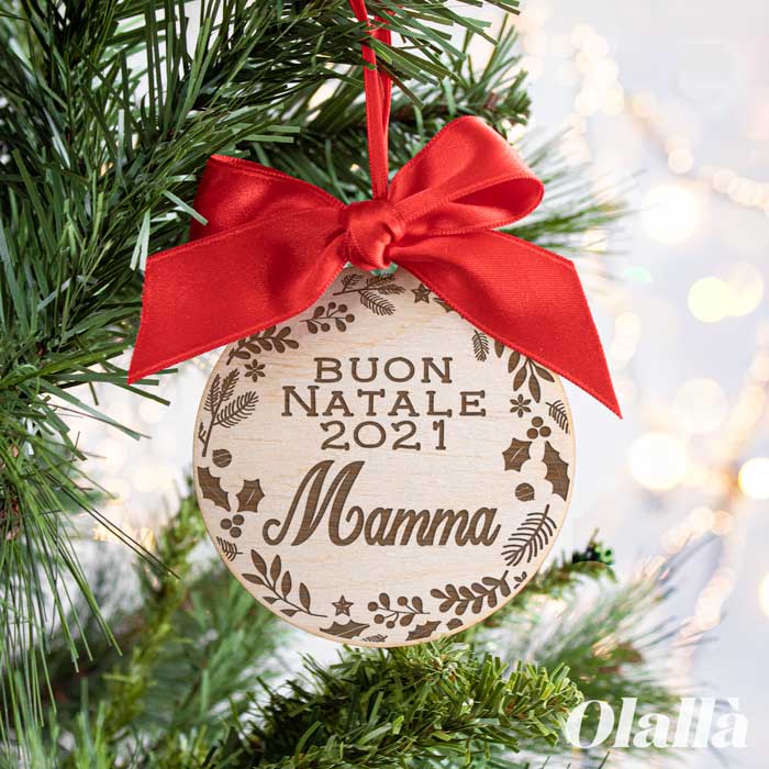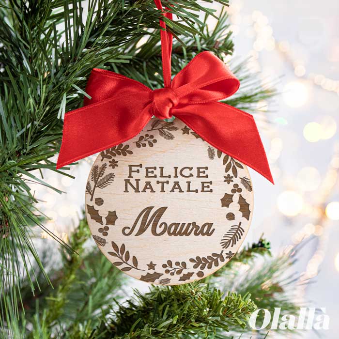 Splendida pallina da appendere all’albero con il tuo messaggio e la tua dedica. Un dolce regalo per celebrare e ricordare il Natale in modo unico e speciale.