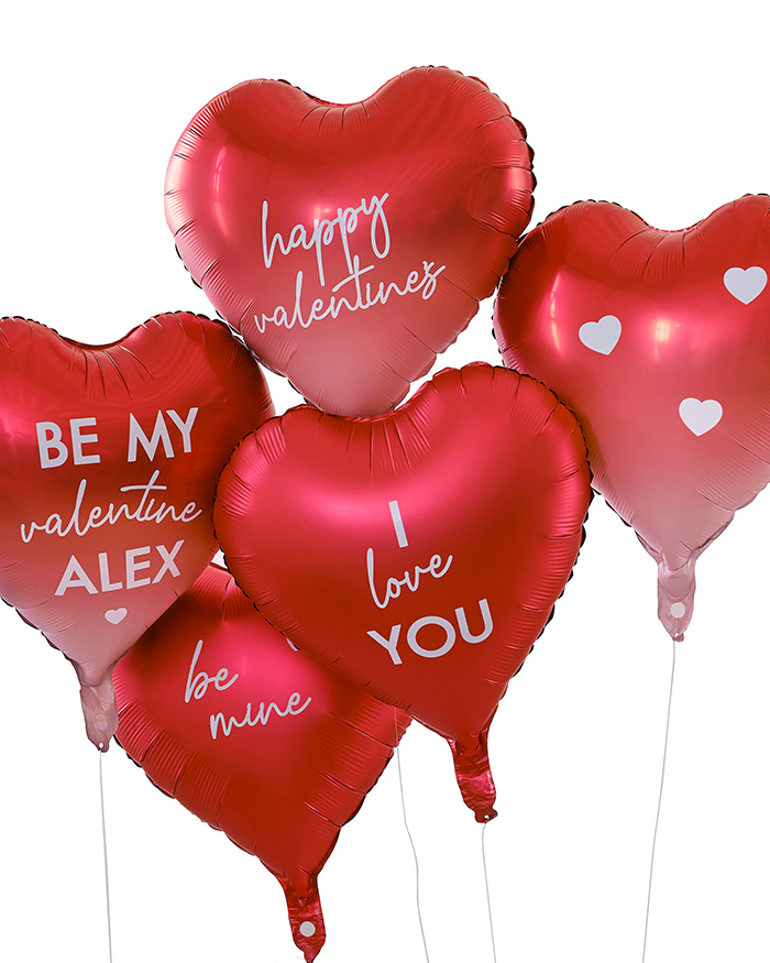 Ogni kit di decorazione con palloncini personalizzabili contiene 5 palloncini a forma di cuore, completi con un kit composto da 14 adesivi bianchi. I delicati toni rossi ed degradé aggiungono ancora più dolcezza a questo set di palloncini, che potrai utilizzare per decorare la camera da letto oppure il soggiorno e realizzare lo sfondo ideale per la tua serata romantica!