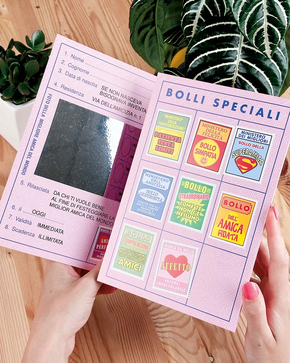 Sei alla ricerca di un regalo veramente originale per una compagna di classe, una collega di lavoro o una vicina di casa che consideri la tua Migliore Amica? La Patente dell’Amica è proprio quello che fa per te. Questo documento speciale sancisce in maniera formale che, dal giorno del rilascio in avanti, quella persona diventa ufficialmente la migliore amica del mondo. Con questo dono simpatico, la tua amica resterà a bocca aperta e, allo stesso tempo, salderete ancora di più il vostro legame di amicizia.