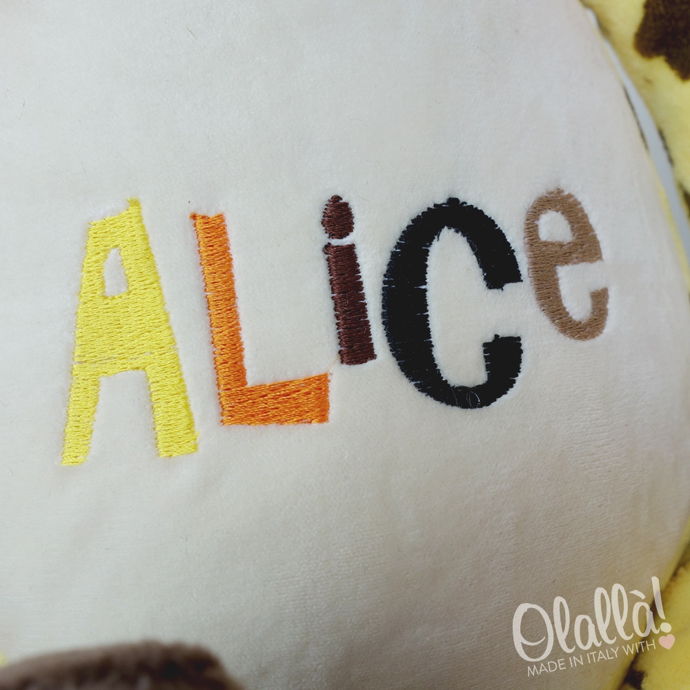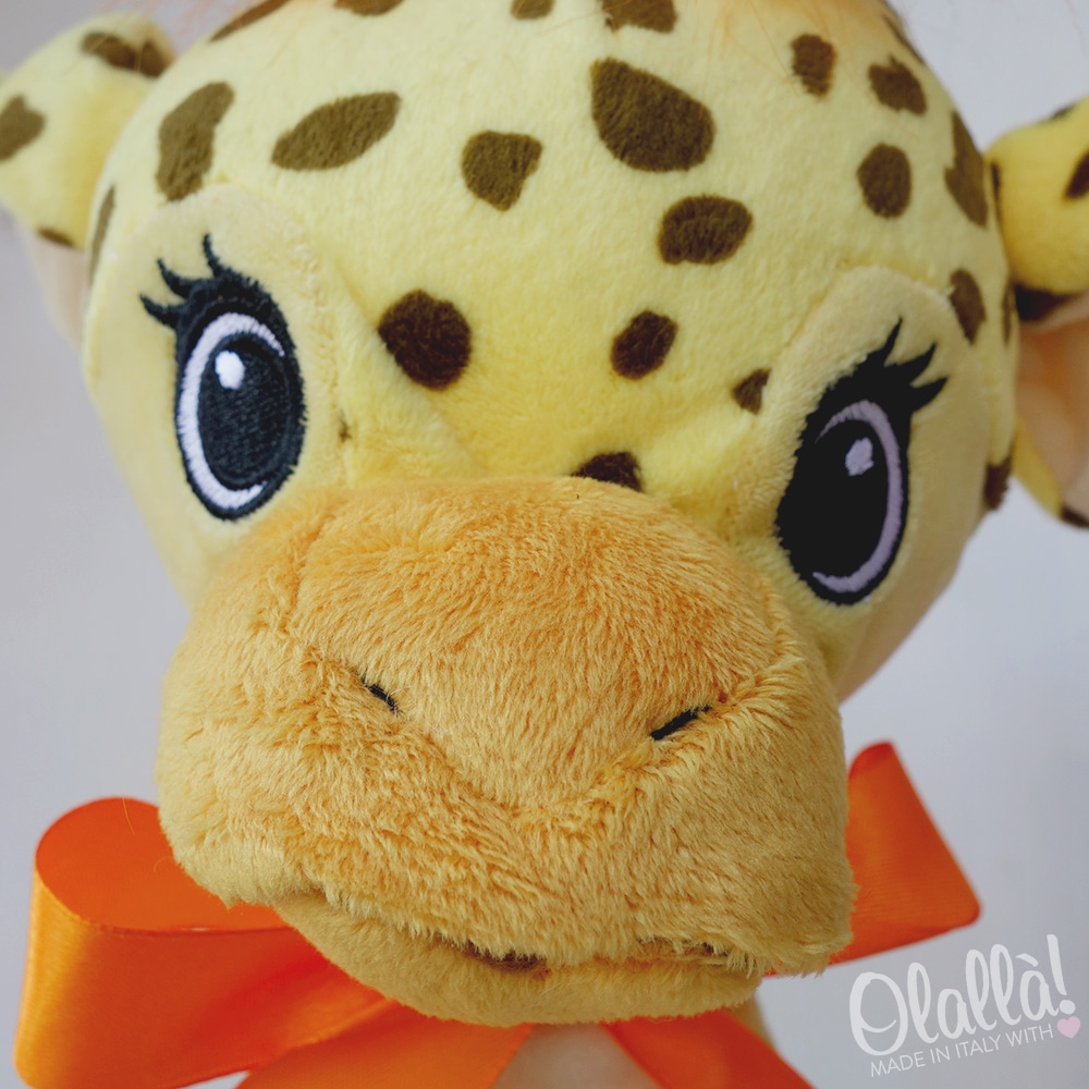 Morbidissima giraffa personalizzata con il ricamo del nome del vostro bambino. Realizzate un regalo davvero originale per una nuova nascita, stupite i genitori e lasciateli a bocca aperta.