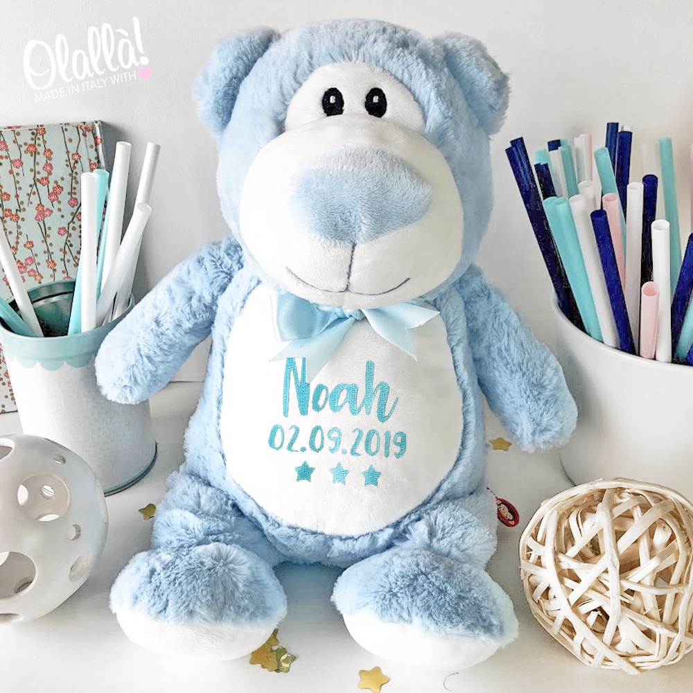 Peluche Personalizzabile con Nome e Data di Nascita – Idea Regalo Nascita