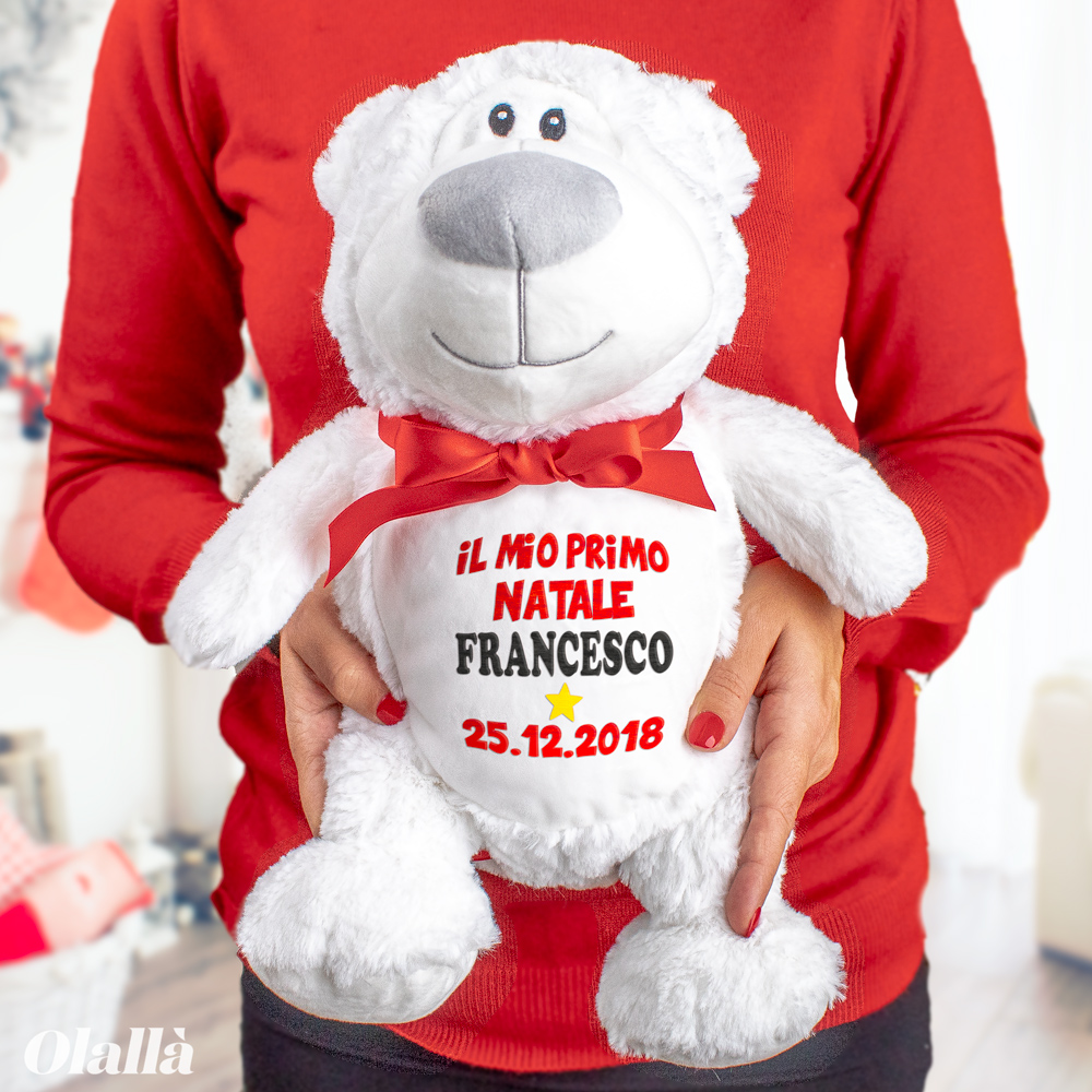 Meraviglioso e morbidissimo peluche personalizzato con la frase “Il mio primo Natale”, il nome del bambino e la data. Il regalo originale che porterà tanta gioia e allegria sia al piccolino sia ai suoi genitori!