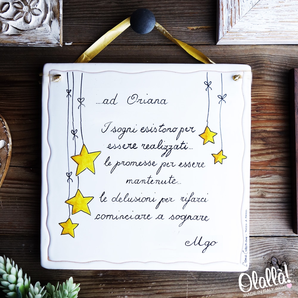 3 recensioni per Piastrella in Ceramica da Appendere Personalizzata con Frase “I sogni esistono per essere realizzati…”