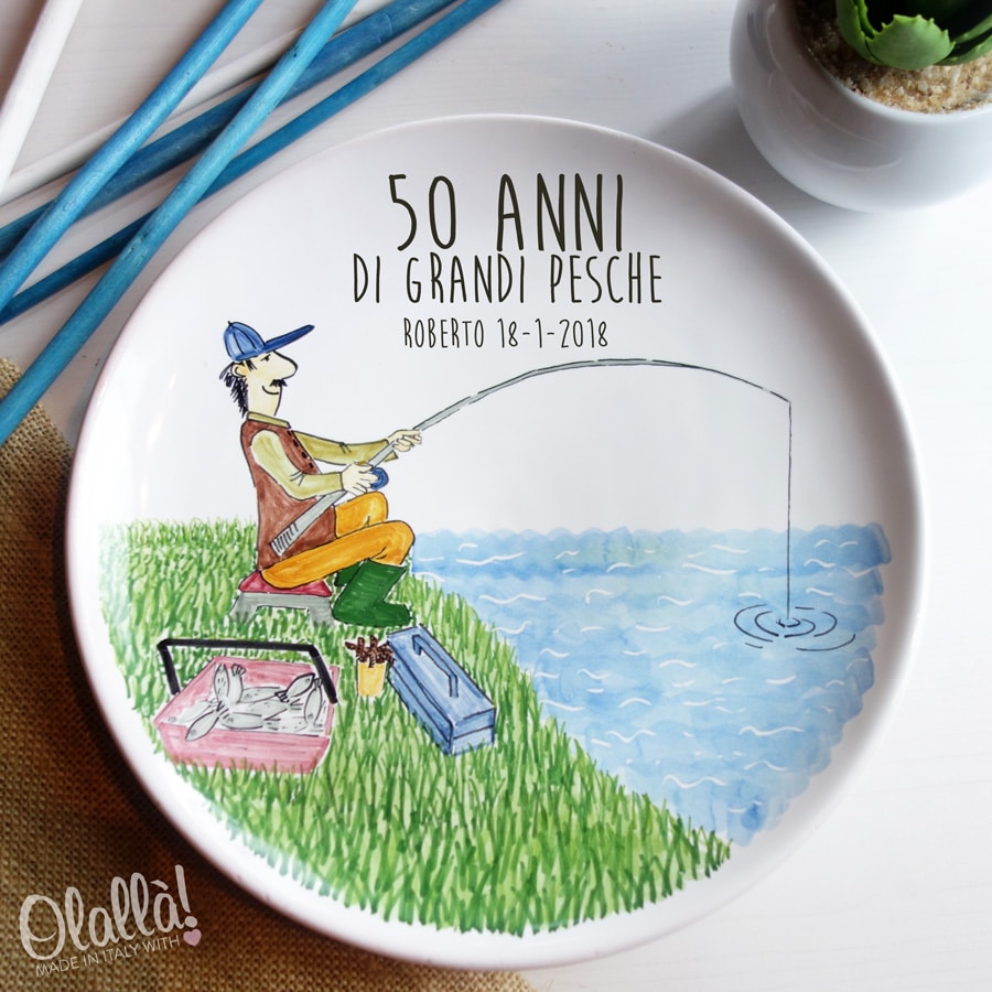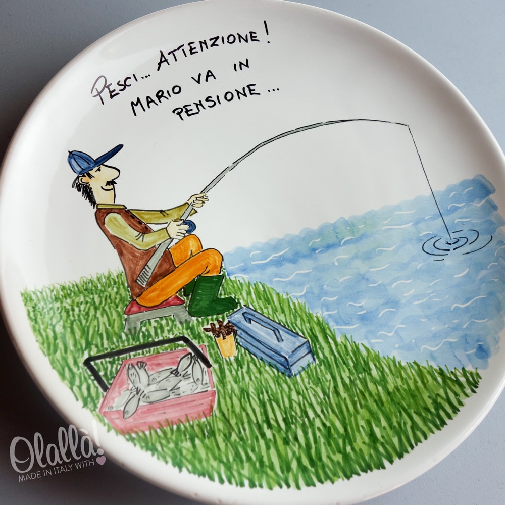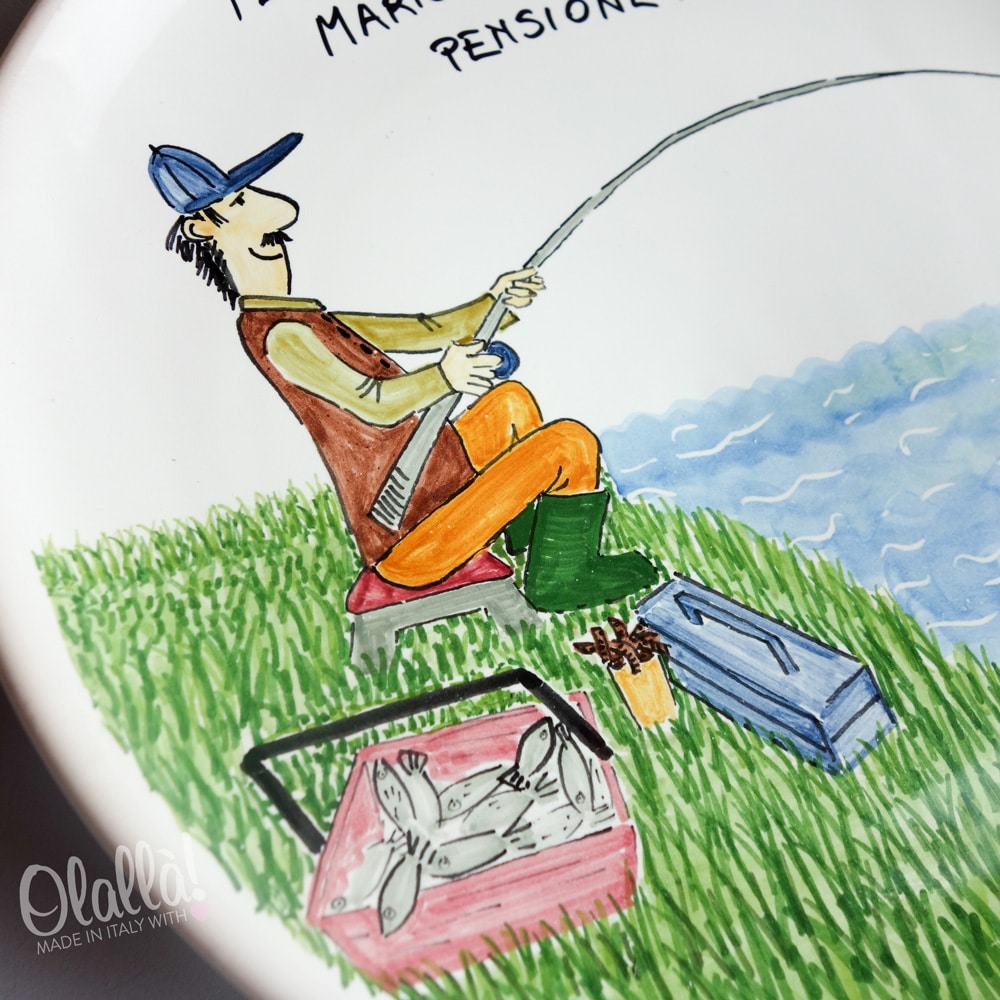 Piatto in Ceramica con Ritratto Pescatore Personalizzato – Idea Regalo Pensionamento