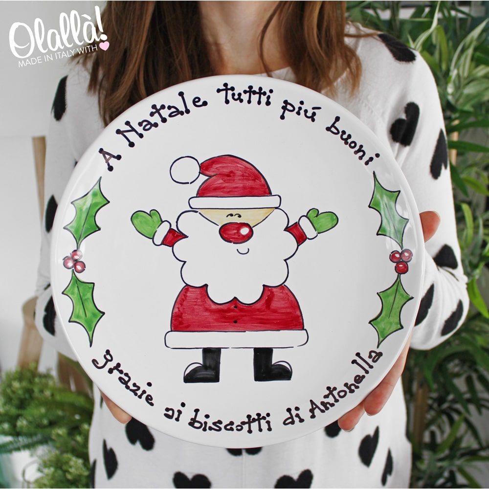 Piatto in Ceramica Dipinto a Mano Personalizzato con le Tue Parole e Babbo Natale – Regalo Natale