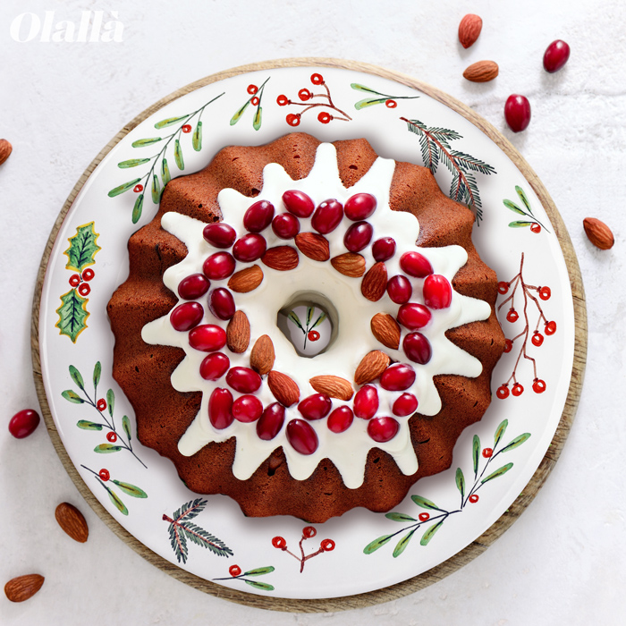Piatto da torta in ceramica smaltata e dipinta a mano. La forma lo rende particolarmente adatto per tagliare e servire biscotti, Panettoni e Pandori.