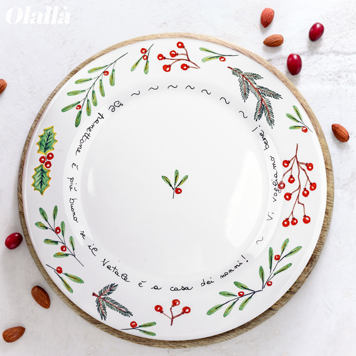Piatto in Ceramica per Panettone Natalizio Dipinto a Mano con Frase Segreta