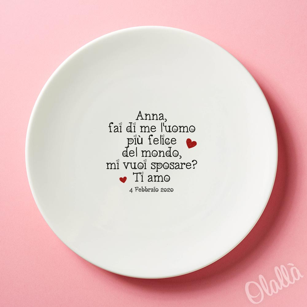 Bellissimo piatto in ceramica con una particolarità speciale: fetta dopo fetta, i commensali vedranno apparire il tuo messaggio segreto! Vuoi chiedere alla tua dolce metà di sposarti? Fallo con questo piatto per un effetto sorpresa assicurato!