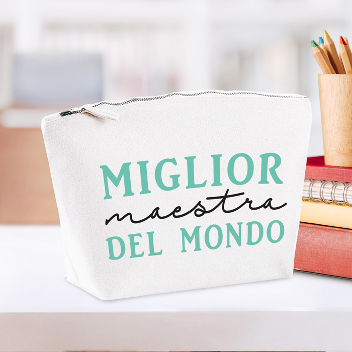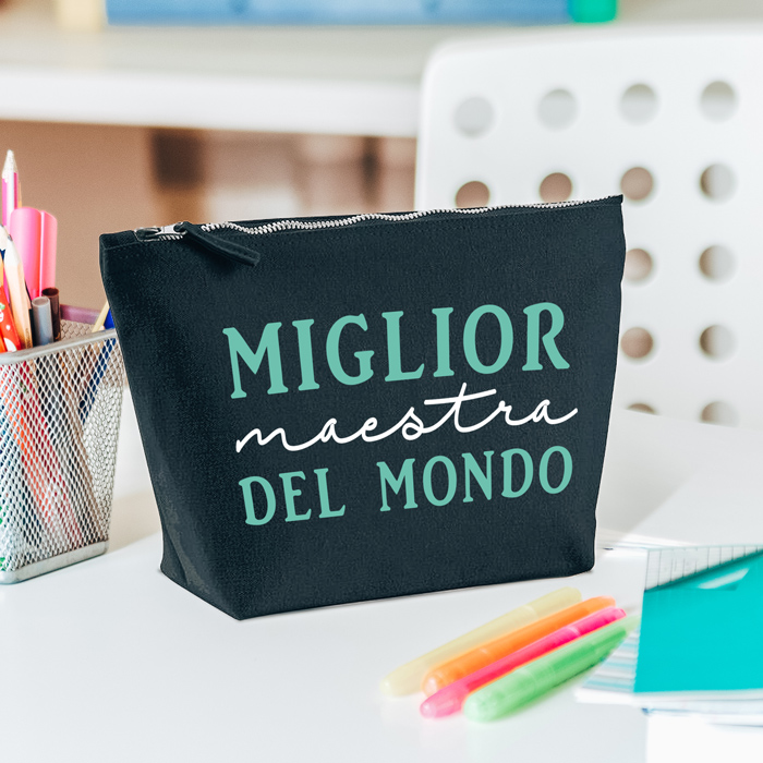 Pochette Beauty Case Personalizzato “Miglior Maestra del Mondo” – Idea Regalo Maestra