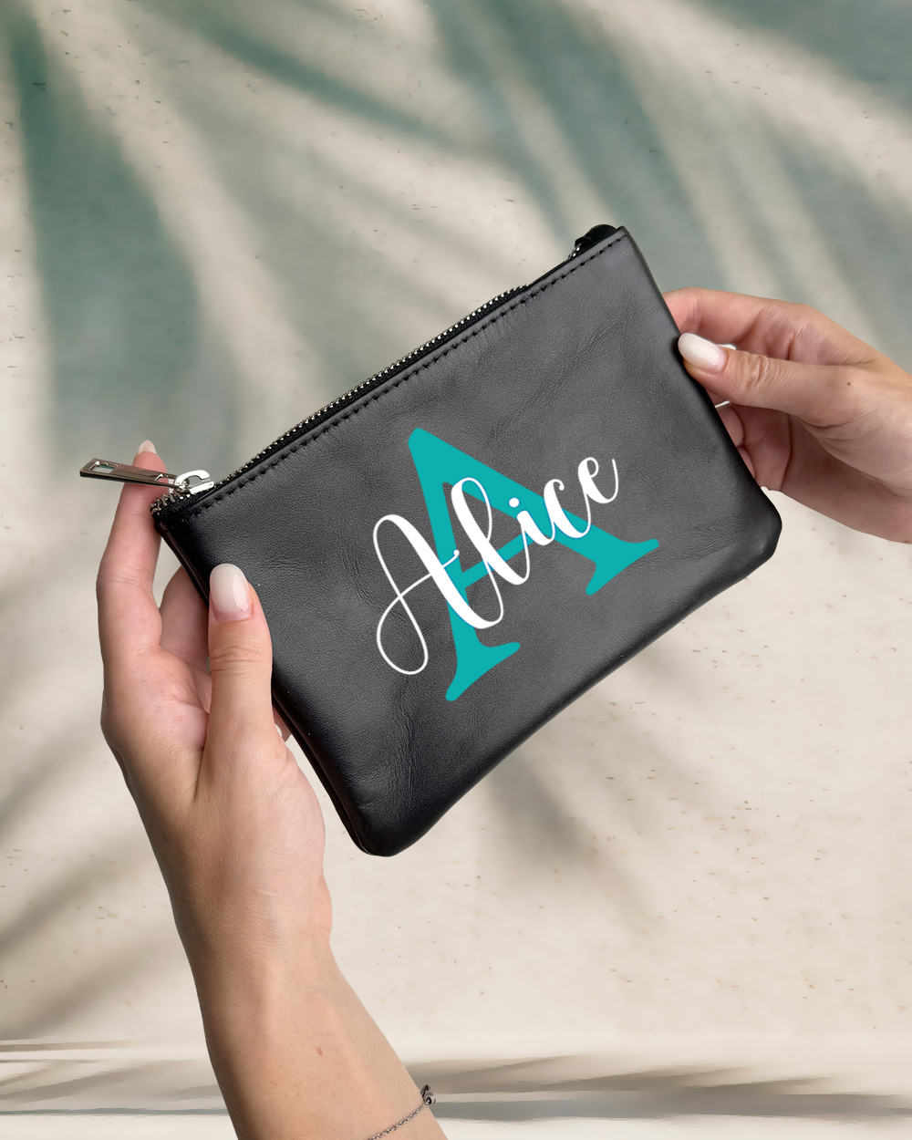 - Pochette realizzata in morbidissima pelle Made in Italy e personalizzata con iniziale e nome nel nostro laboratorio di Padova.