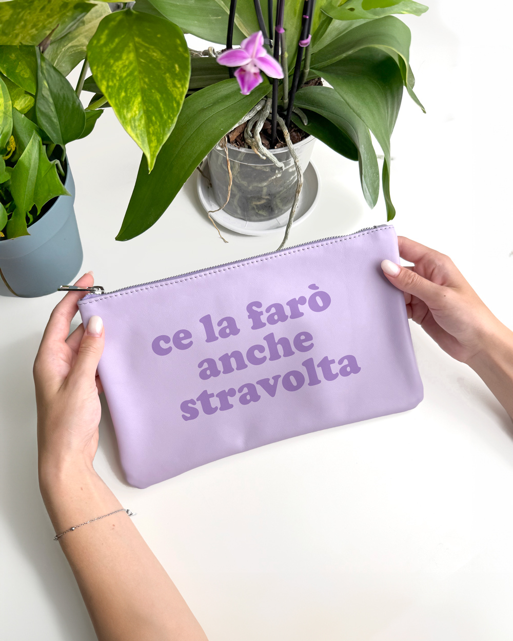 - Perfetta per l’Amica Stressata: Questa pochette è il regalo ideale per quell’amica, sorella o fidanzata che torna a casa stanca ma con un sorriso. La scritta “Ce La Farò Anche Stravolta” è un promemoria spiritoso e motivante che aggiungerà un tocco di allegria alle sue giornate.