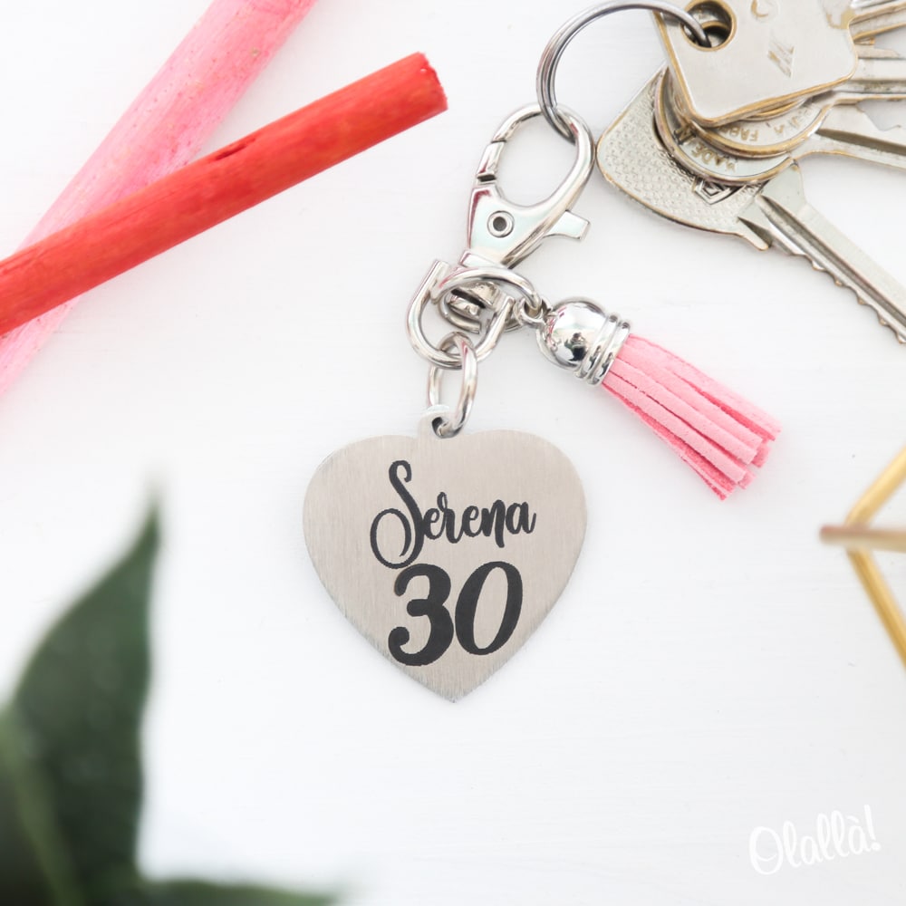 Portachiavi in Acciaio inox satinato con nappina di Eco Pelle.