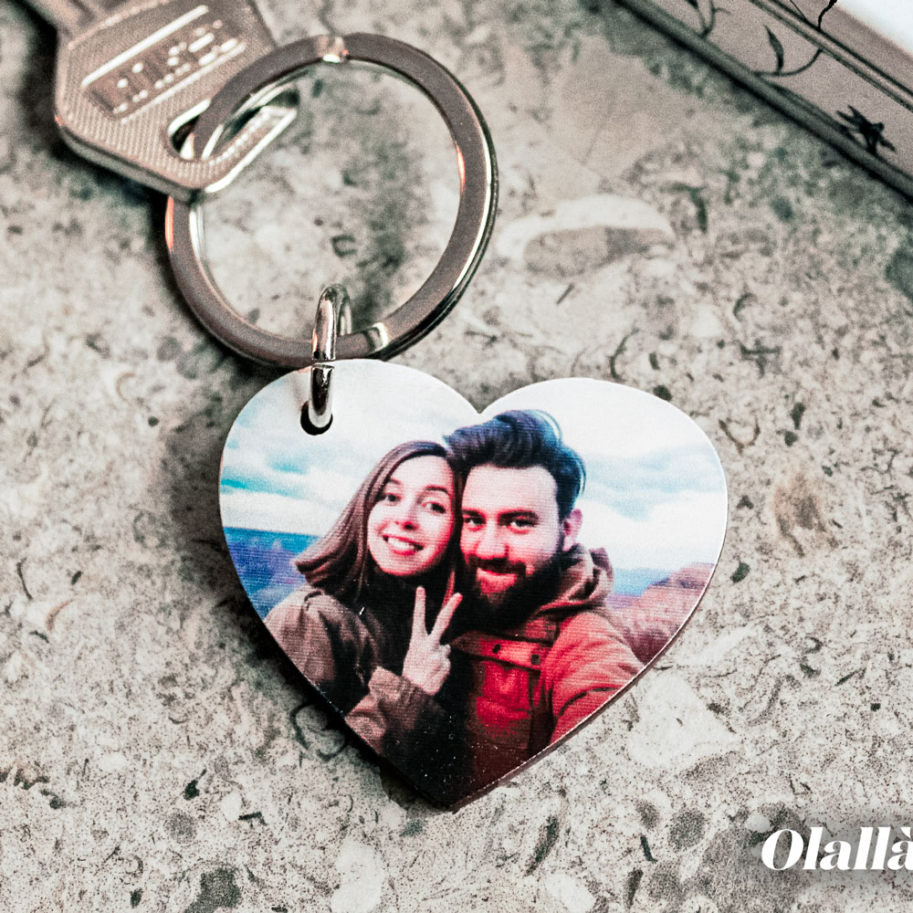 Portachiavi Cuore in Legno con Stampa della Vostra Foto e Dedica sul Retro