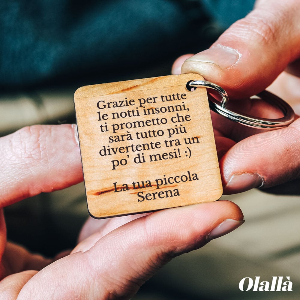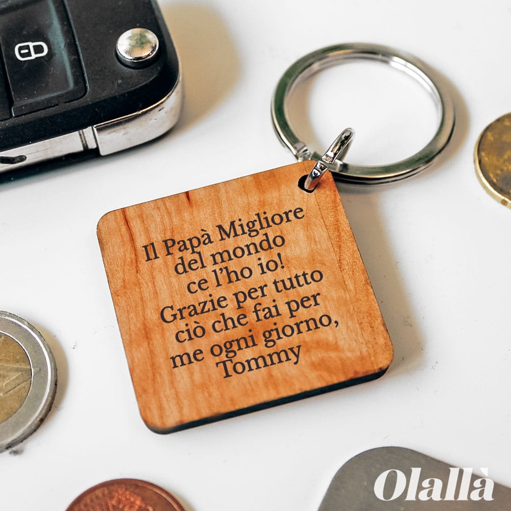 Unico portachiavi in legno personalizzato con la tua foto e una dedica speciale. Un’originale regalo da fare al papà per ogni occasione… in questo modo ti porterà sempre in tasca, ovunque vada!