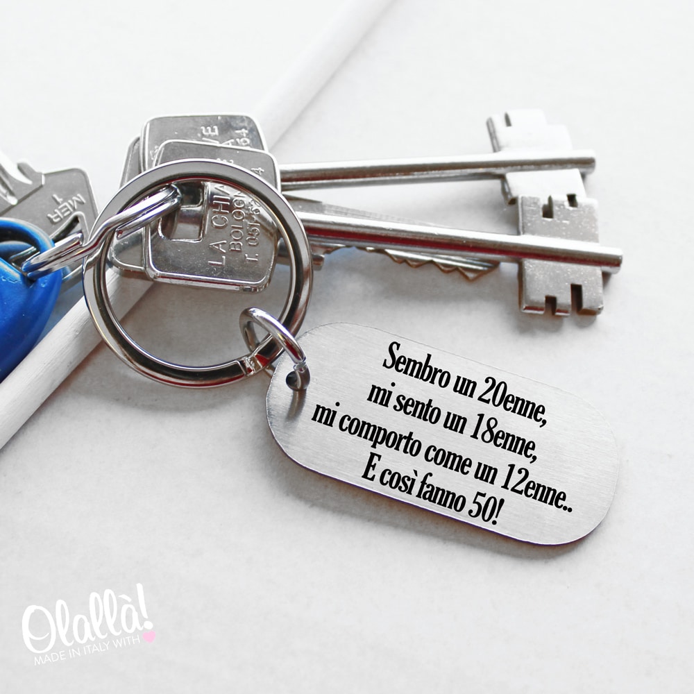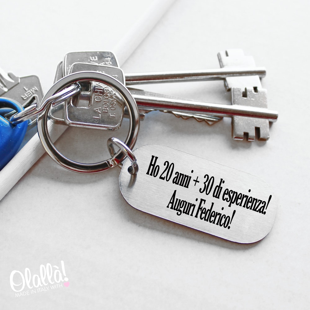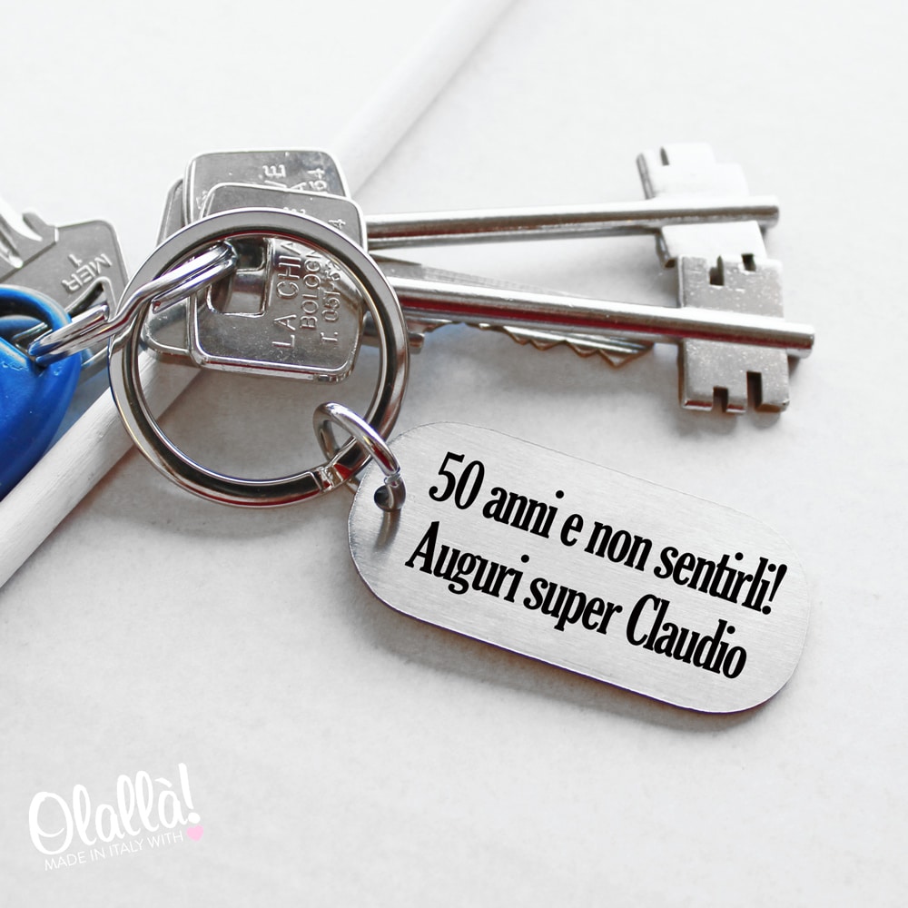 Elegante portachiavi in acciaio inox personalizzabile con una frase a vostra scelta, una data, un numero. E’ meglio scegliere una frase non troppo lunga. Se desiderate incidere un motivo, disegno, frase o logo diverso contattateci servizioclienti@olalla.it saremo lieti di aiutarvi a realizzare le vostre idee.