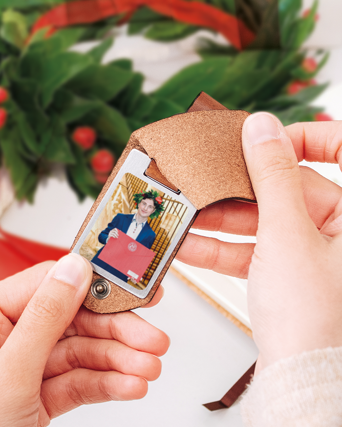 Bellissimo Portachiavi in vero cuoio italiano con all’interno foto e dedica segreta! Personalizza il portachiavi con una brevissima frase augurale, ad esempio “Per aspera ad astra”, oppure “Ad maiora semper”, e con la foto più bella del neo dottore o dottoressa e una dedica.