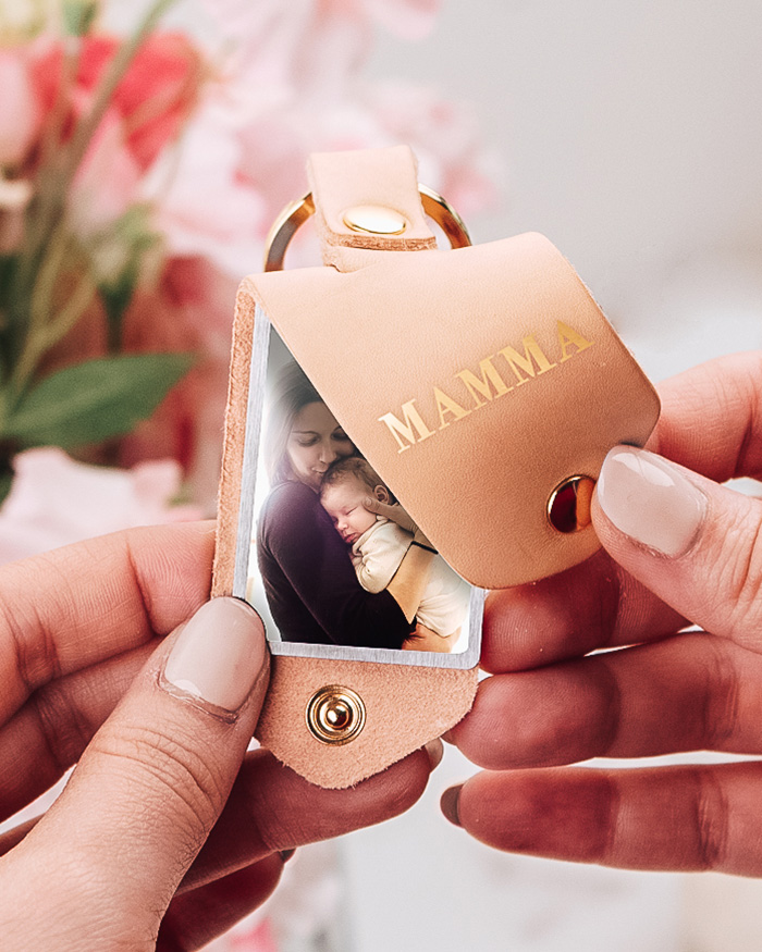 Bellissimo Portachiavi in vero cuoio italiano nella nuance rosa cipria con all’interno foto e dedica segreta! Personalizza il tuo portachiavi con una brevissima frase, e con la tua foto più bella e una dolce dedica.