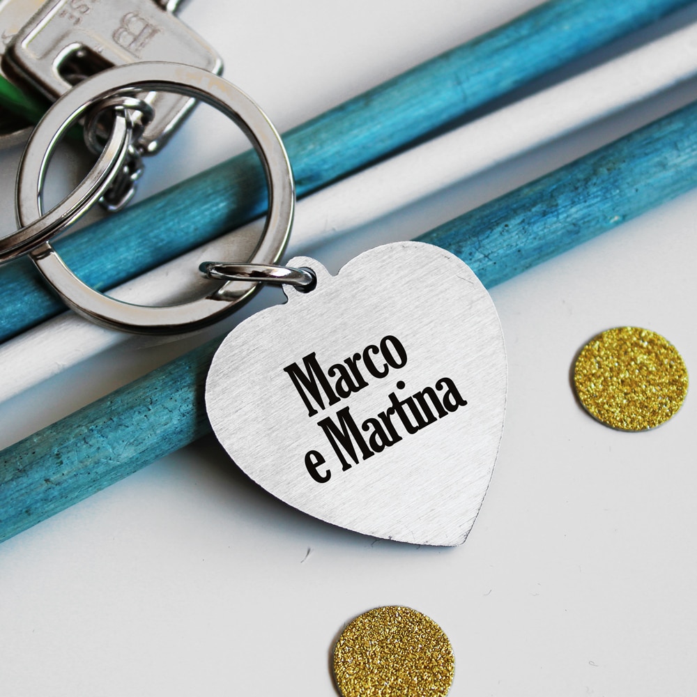 Splendido portachiavi in acciaio inox a forma di cuore con con dedica, personalizzabile sia fronte che retro (costo extra). Il regalo perfetto per la festa del papà!