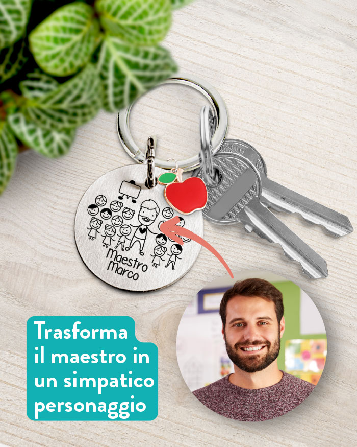PERSONALIZZABILE CON IL RITRATTO STILIZZATO della tua insegnante, per rendere ogni portachiavi davvero unico e irripetibile!