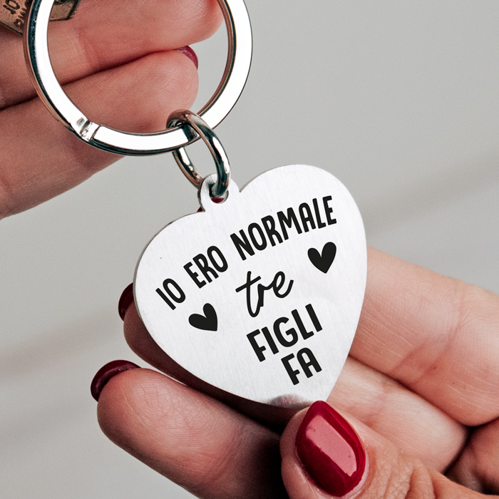 Portachiavi Personalizzato “Io Ero Normale fino a Due Figli Fa” con Frase e Numero Inciso in Acciaio Inox – Idea Regalo Festa della Mamma