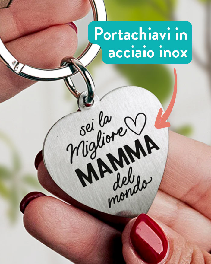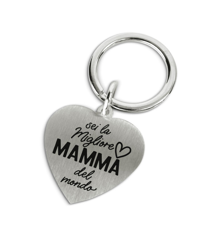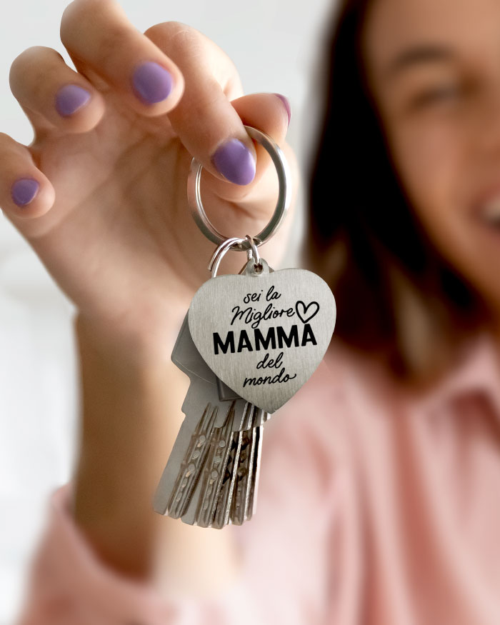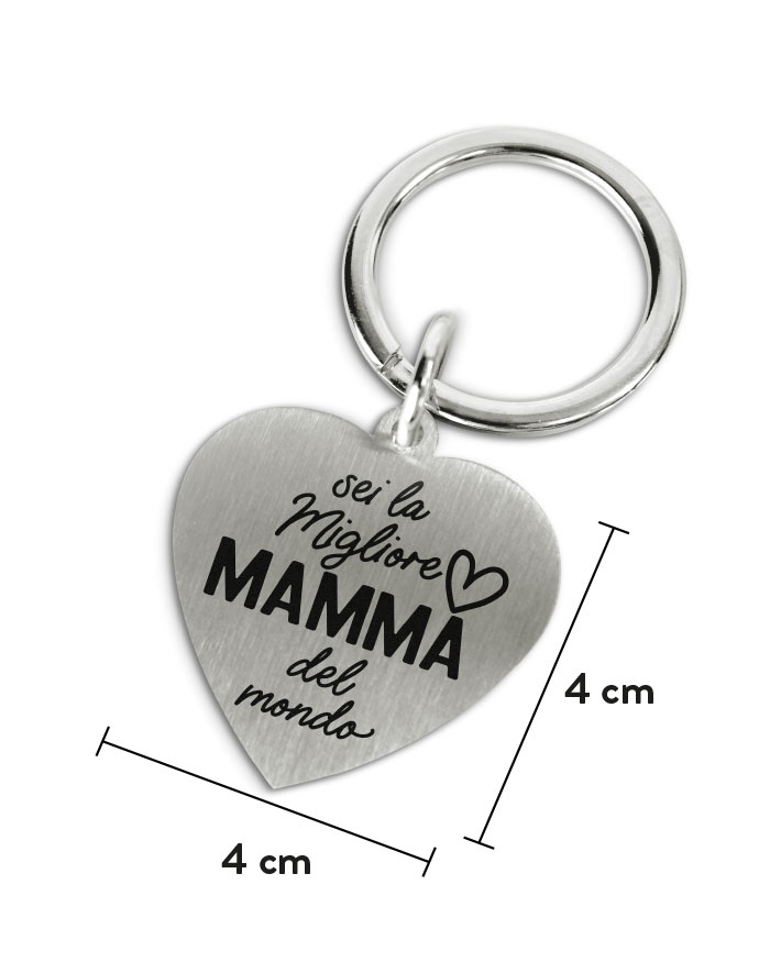 Portachiavi in acciaio inox a cuore “Sei la Migliore Mamma del mondo”.