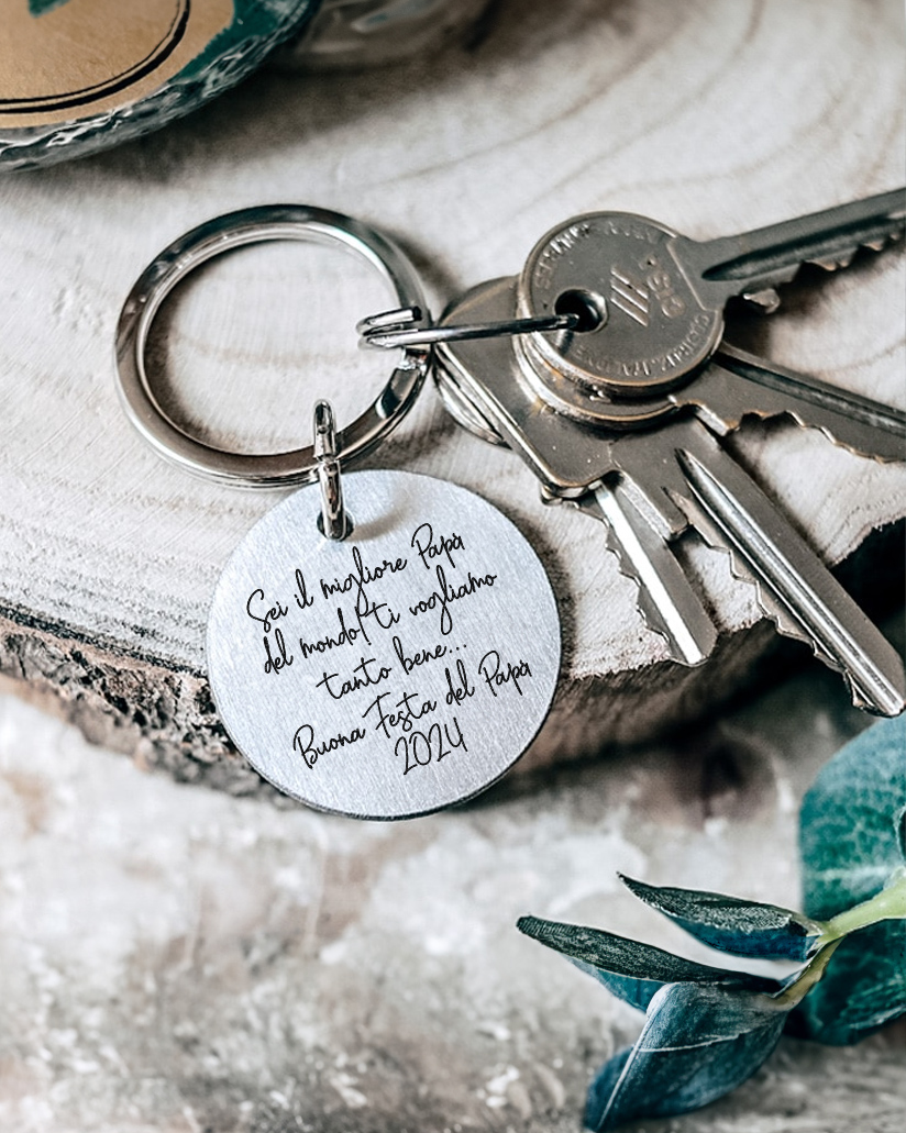 Quando si avvicina la Festa del Papà, la ricerca del regalo perfetto diventa una priorità. Vuoi qualcosa di unico, personale e che possa accompagnare tuo padre ogni giorno, ricordandogli quanto sia amato e apprezzato. Il Portachiavi Tondo in Acciaio Personalizzato con Pugni e Dedica è esattamente ciò che stai cercando.