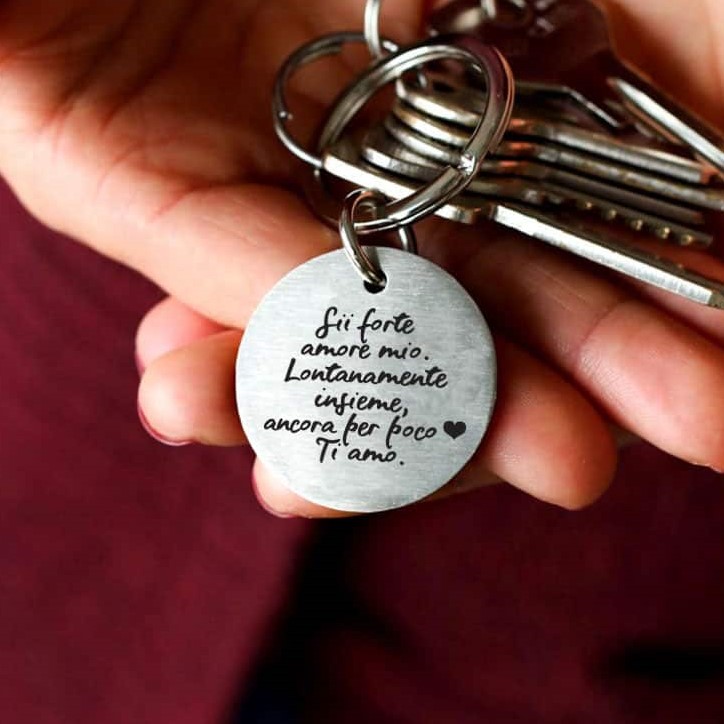 Il portachiavi in acciaio tondo ha diametro di 3,5 cm