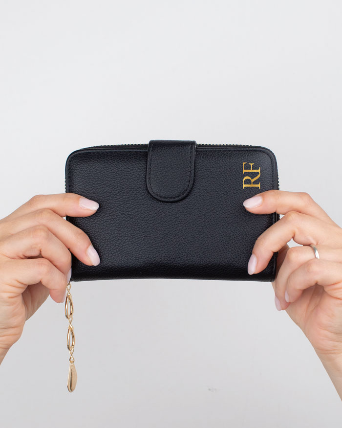Portafoglio in ecopelle personalizzabile con iniziali, perfetto per portare un po’ di stile sempre con sé ma senza rinunciare alla praticità. Comodo e maneggevole, sarà una perfetta idea regalo per la mamma, l’amica del cuore o la fidanzata a cui lo regalerete.