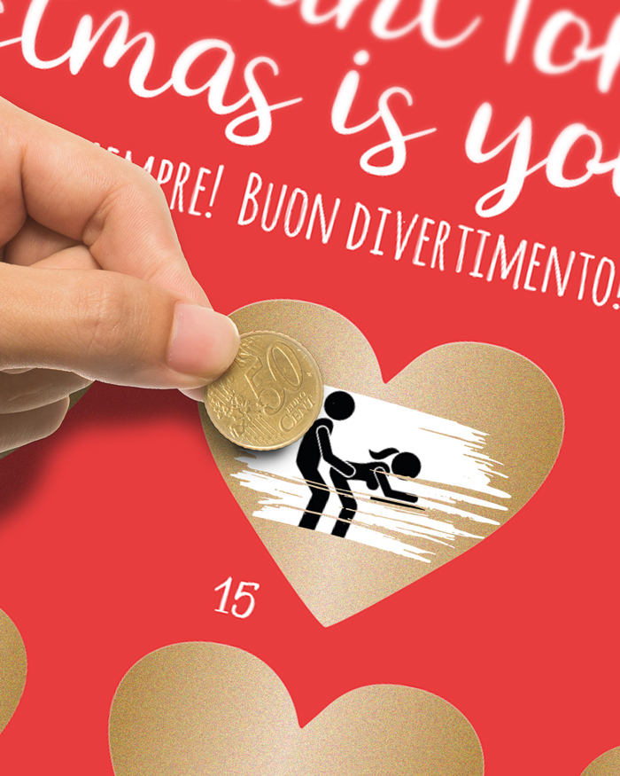 Piccante Calendario dell’Avvento Sexy in versione Gratta e Vinci super hot! Regala un mese di sfrenato divertimento al/alla tuo/a partner con questo calendario dell’avvento tutto da grattare per scoprire ogni giorno una nuova posizione da sperimentare sotto le lenzuola. Con questo calendario l’attesa del Natale sarà decisamente…un piacere!