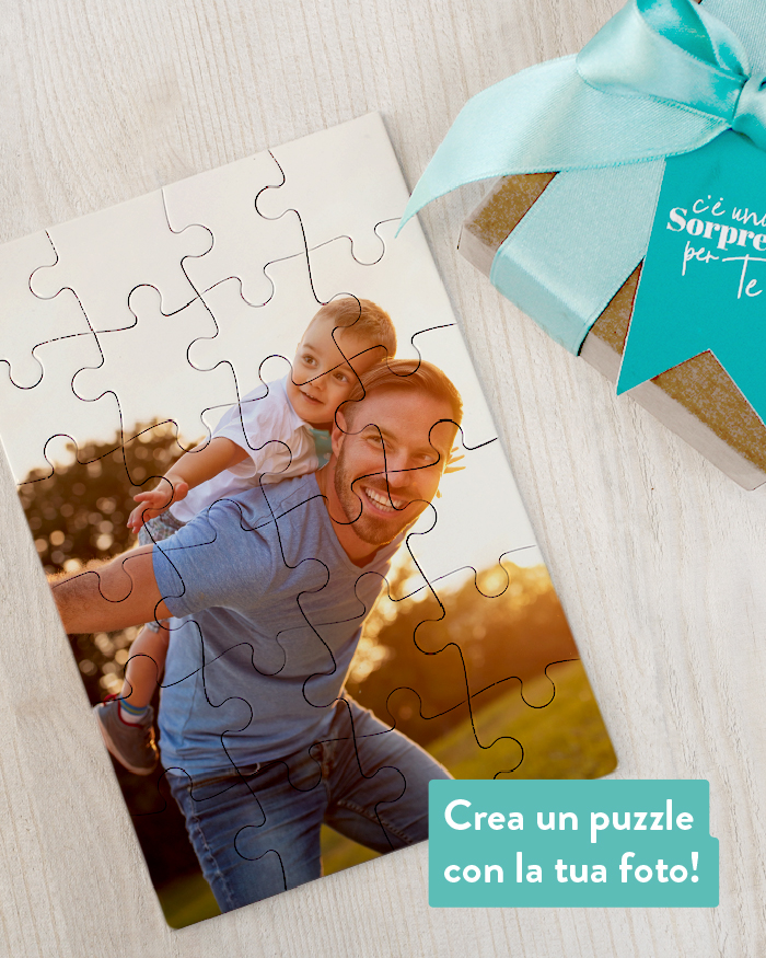 Quest’anno sorprendi il tuo papà il giorno della Festa del Papà con un puzzle da costruire insieme. Incastro dopo incastro comparirà la vostra foto. Puoi anche decidere di incorniciarlo, sarà senz’altro un ricordo speciale dei vostri momenti insieme.