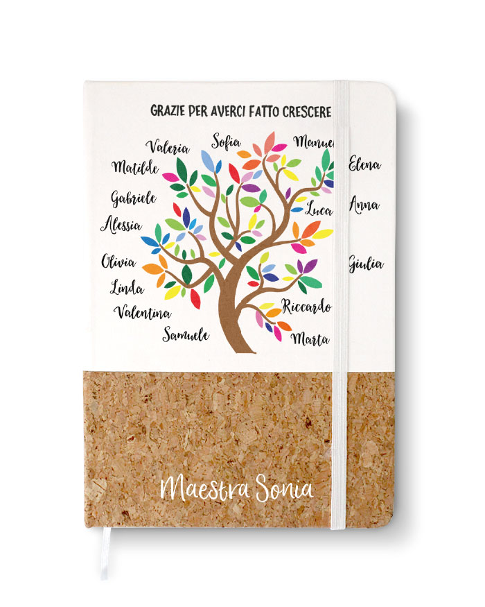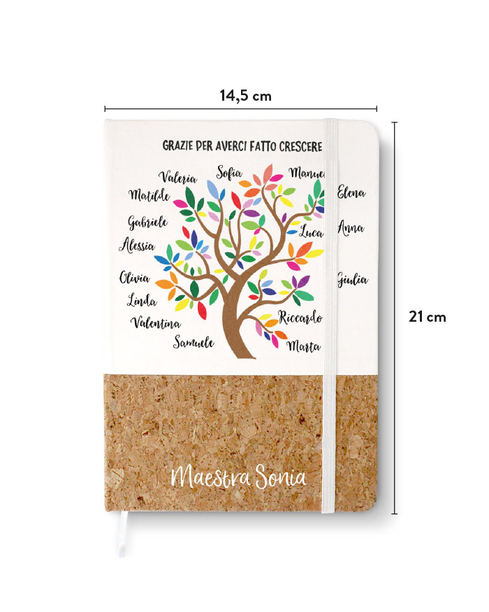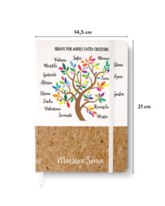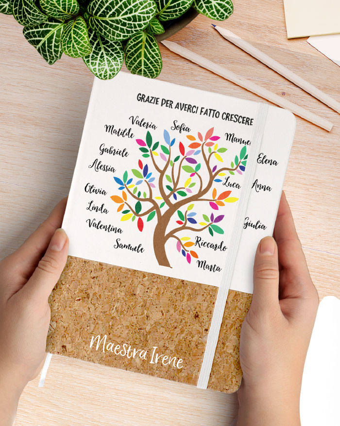 Quaderno Agenda Personalizzabile in Sughero con Albero della Vita, Nome della Maestra e Nomi Alunni – Idea Regalo Originale per Maestre, Regalo di Classe per Fine Anno Scolastico