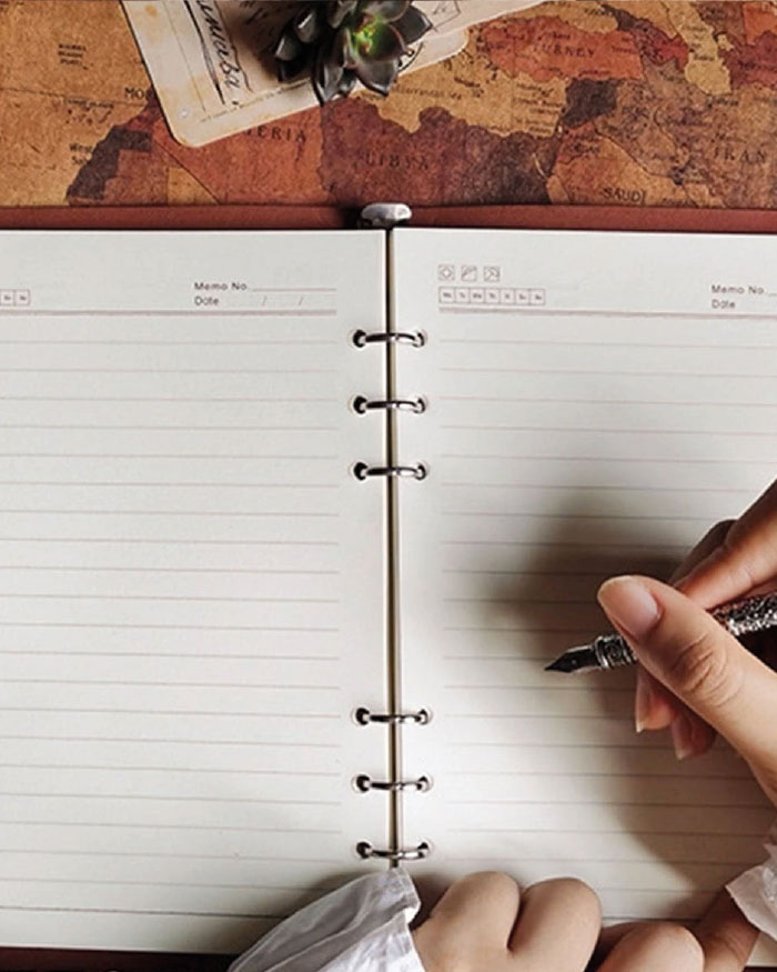 - ANELLI E PAGINE REMOVIBILI: Una delle caratteristiche più interessanti di questo quaderno è la sua versatilità. Gli anelli consentono di rimuovere o aggiungere pagine con facilità, adattandolo alle esigenze del suo utilizzatore. Che si tratti di appunti, disegni o piani, questo taccuino può essere personalizzato in base ai suoi interessi e necessità.